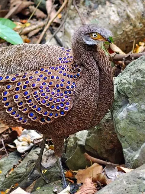 血雉雉科血雉属鸟类,别名血鸡、松花鸡,血雉的雄鸟大覆羽、尾下覆羽、尾上覆羽、脚、头侧、腊膜为红色,…