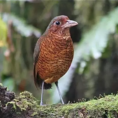 雌鸟:上体橄榄褐色,具黑色状斑,头顶、翅、尾灰褐色。下体棕白色具褐色状避 。