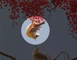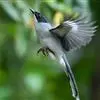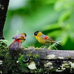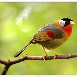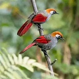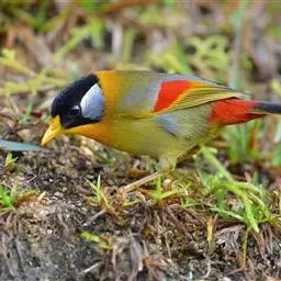 银耳相思鸟小型鸟类,体长14~18厘米。头顶黑色,耳羽银灰色,前额橙黄色;外侧飞羽橙黄色,基部朱红色,…