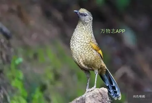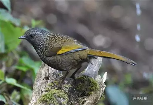 纯色噪鹛(学名:Trochalopteron subunicolor)是鹟科、噪鹛属中型鸟类,体长22-24厘米。上下体羽大都呈橄榄褐色或棕褐色,各羽均具黑色羽缘,在上下体形成密集的鳞状斑。外侧飞羽外硼基部草黄色,在翅上形成明显的块斑;外侧尾羽大都黑褐色具白色端斑。虹膜褐色或淡黄褐色,嘴黑褐色,脚暗褐或角褐色。