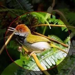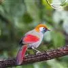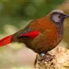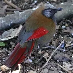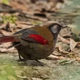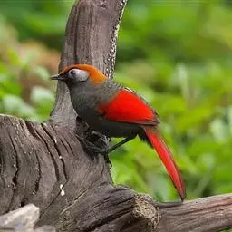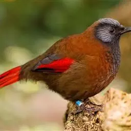赤尾噪鹛中型鸟类,体长24~28厘米。头顶至后颈红棕色,两翅和尾鲜红色,眼先、眉纹、颊、颏和喉黑色,…