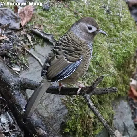 相似种蓝翅噪鹛(Garrulax squamatus)有黑色眉纹,外侧飞羽外翈蓝色,外侧尾羽无白色端斑。区别亦甚明显,野外不难识别。 蓝翅噪鹛