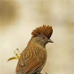 斑喉希鹛小型鸟类,体长14~17厘米。头具羽冠,前额和头顶羽冠金黄褐色,头侧灰黄色具黄色眼圈。…