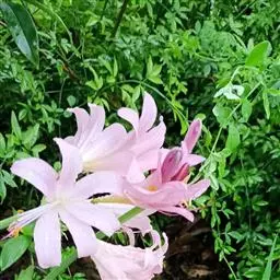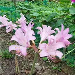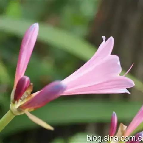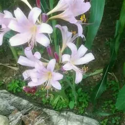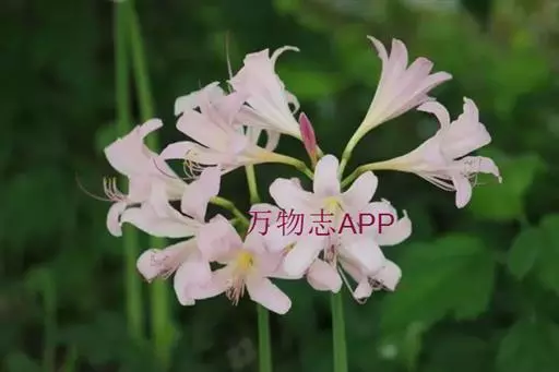 鹿葱(学名:Lycoris squamigera Maxim.)草本,1959年由Maxim命名;地生。鳞茎卵形。秋季出叶,叶带状,顶端钝圆。伞形花序,有花4-8朵,淡紫红色。花被裂片倒披针形,边缘基部微皱缩。雄蕊与花被裂片近等长。花柱略伸出花被外。