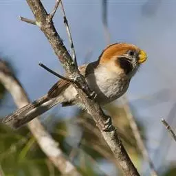 文须雀,别称髭雀、文须山雀,属雀形目、鹆鸟科、画眉亚科。眼先及髭纹黑色,头顶暗灰,…