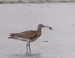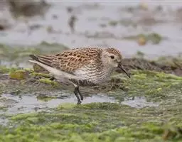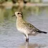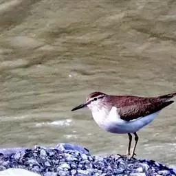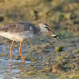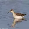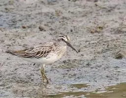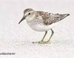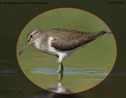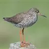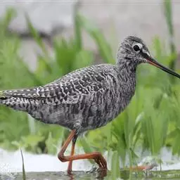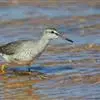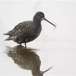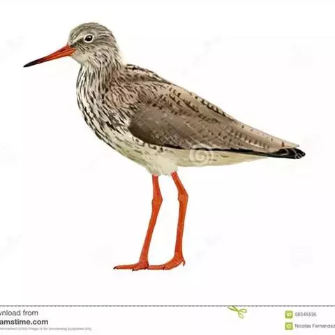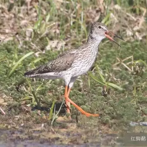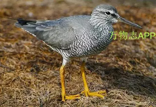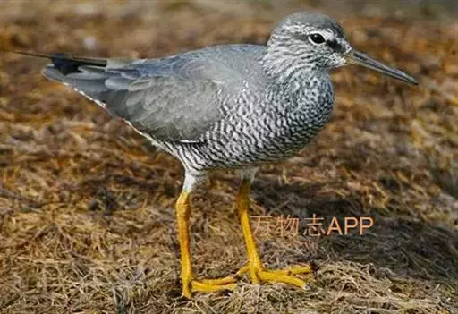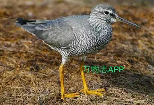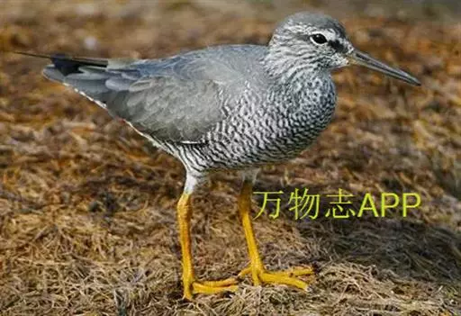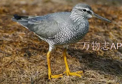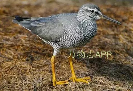 红脚鹬:体长28厘米,上体褐灰,下体白色,胸具褐色纵纹。飞行时腰部白色明显,次级飞羽具明显白色外缘。…