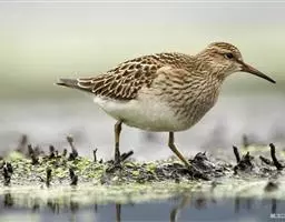林鹬体长约20厘米,体型略小,纤细,褐灰色,腹部及臀偏白,腰白。上体灰褐色而极具斑点;眉纹长,…