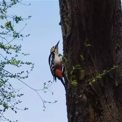 大斑啄木鸟隶属鸟纲鴷形目啄木鸟科。雄鸟头顶黑色,枕部红色,眼先、颊部和耳羽白色,颈部污白色,…
