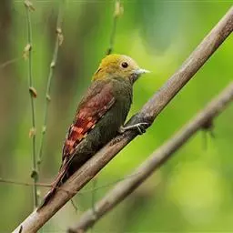 绿啄木鸟是鴷形目啄木鸟科绿啄木鸟属鸟类。雄鸟额和头顶前部辉红色,鲜丽异常;雌鸟头上无红色;嘴尖直,…