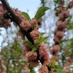 四、杏梅类(Armeniaca mume var. bungo Makino) 枝和叶似山杏;花半重瓣,粉红色,如杏梅、洋梅、送春等品种。花期较晚,抗寒性较强,可能是杏与梅的天然杂交种。