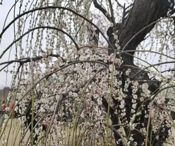 三、龙游梅类(Armeniaca mume var. tortuosa T. Y. Chen et H. H. Lu) 枝条自然扭曲如游龙;花碟形,半重瓣,白色,如龙游梅。