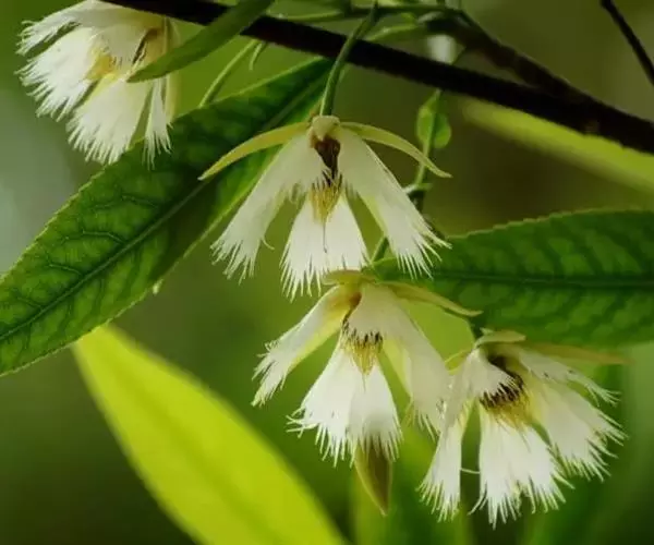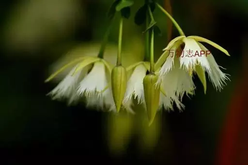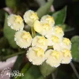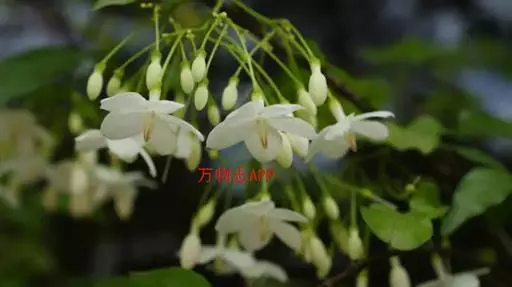 聚伞花序长约5厘米;总花梗长0.5-1.5厘米;花梗长约1厘米;萼片阔卵形或卵形,顶端钝,比花冠筒短,被微柔毛,内面基部有腺体;花冠漏斗状,白色、浅黄色或粉红色,花冠筒长5毫米,裂片长圆形,顶端钝,长约1.5厘米,宽7毫米;副花冠分裂为10鳞片,呈流苏状,比花药长或等长,其中5枚鳞片生于花冠裂片上,与裂片对生,长8毫米,顶端通常有3个小齿,其余5枚鳞片生于花冠筒顶端与花冠裂片互生,长6毫米,顶端2深裂;雄蕊伸出花喉之外,花药箭头状,被短柔毛;子房由2枚粘生心皮组成,无毛,花柱丝状,向上逐渐增大,柱头卵形。