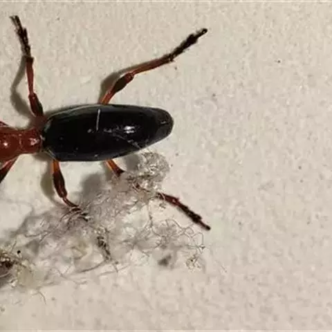 桃红颈天牛是天牛科、颈天牛属昆虫。体黑色发亮,前胸背面大部分为光亮的棕红色或完全黑色。头黑色,…
