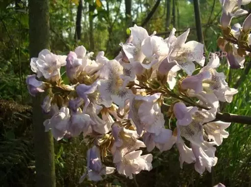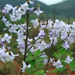 白花泡桐(学名:Paulownia fortunei (Seem.) Hemsl.)是玄参科泡桐属植物,乔木高达30米,树冠圆锥形,主干直,胸径可达2米,树皮灰褐色;叶片长卵状心脏形,有时为卵状心脏形。花序枝几无或仅有短侧枝,故花序狭长几成圆柱形;雄蕊长3-3.5厘米,有疏腺;蒴果长圆形或长圆状椭圆形。种子连翅长6-10毫米。花期3-4月,果期7-8月。