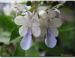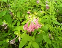 花序枝几无或仅有短侧枝,故花序狭长几成圆柱形,长约25厘米,小聚伞花序有花3-8朵,总花梗几与花梗等长,或下部者长于花梗,上部者略短于花梗;萼倒圆锥形,长2-2.5厘米,花后逐渐脱毛,分裂至1/4或1/3处,萼齿卵圆形至三角状卵圆形,至果期变为狭三角形;花冠管状漏斗形,白色仅背面稍带紫色或浅紫色,长8-12厘米,管部在基部以上不突然膨大,而逐渐向上扩大,稍稍向前曲,外面有星状毛,腹部无明显纵褶,内部密布紫色细斑块;雄蕊长3-3.5厘米,有疏腺;子房有腺,有时具星毛,花柱长约5.5厘米。