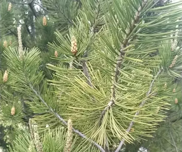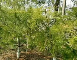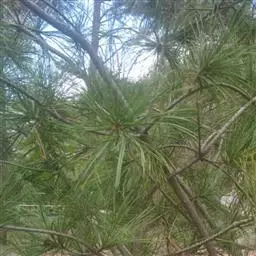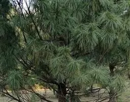乔木,高达30米,胸径可达3米;有明显的主干,或从树干近基部分成数干;枝较细长,斜展,形成宽塔形至伞形树冠;幼树树皮光滑,灰绿色,长大后树皮成不规则的薄块片脱落,露出淡黄绿色的新皮,老则树皮呈淡褐灰色或灰白色,裂成不规则的鳞状块片脱落,脱落后近光滑,露出粉白色的内皮,白褐相间成斑鳞状;一年生枝灰绿色,无毛;冬芽红褐色,卵圆形,无树脂。针叶3针一束,粗硬,长5-10厘米,径1.5-2毫米,叶背及腹面两侧均有气孔线,先端尖,边缘有细锯齿;横切面扇状三角形或宽纺锤形,单层皮下层细胞,在背面偶尔出现1-2个断续分布的第二层细胞,树脂道6-7,边生,稀背面角处有1-2个中生;叶鞘脱落。雄球花卵圆形或椭圆形,长约l厘米,多数聚生于新枝基部成穗状,长5-10厘米。