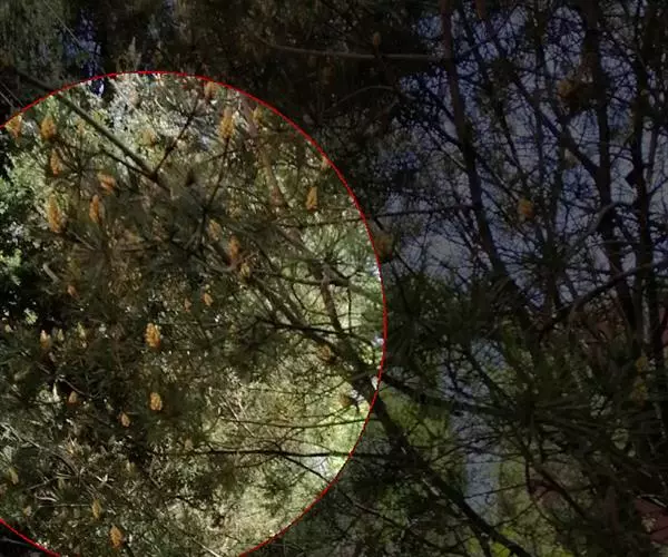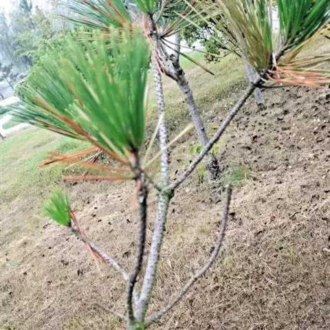 危害特征:松梢螟成虫灰褐色,幼虫淡褐色到淡绿色。松梢螟可钻蛀白皮松主梢,让松梢枯死,引发侧梢丛生。侧梢的向上生长,可能导致树干弯曲,严重者还会引起树干断裂。松梢螟幼虫在被害梢蛀道内或枝条基部伤口越冬。