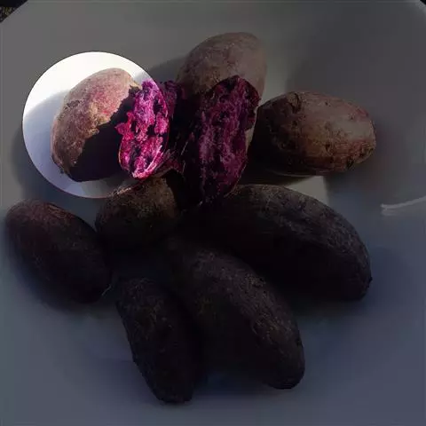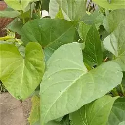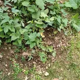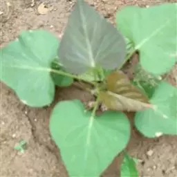 番薯 Lam.),多年生草质藤本植物,具有乳汁;其块根为白、红或黄色;茎生不定根;叶呈宽卵形或卵状心形,叶色有浓绿、黄绿、紫绿等,前端渐尖,基部呈心形或近平截;花冠为粉红、白、淡紫或紫色,呈钟状或漏斗状,无毛;蒴果呈卵形或扁圆形;由于番薯是于异花授粉,自花授粉常不结实,所以有时只见开花不见结果。 种子1-4粒,通常2粒,无毛。番薯原产于南美洲及大、小安的列斯群岛,现已广泛栽培在全世界的热带、亚热带地区,但在一些较北的地区如黑龙江省也已栽种成功,中国大多数地区都普遍栽培。番薯适应性强,喜温暖多光而不耐霜冻,抗旱耐碱,适种于肥沃而排水良好的砂质壤土,是一种易于保收的作物。番薯是一种高产而适应性强的粮食作物,在中国南方,有“一造番薯半年粮”的说法, 与工农业生产和人民生活关系密切;块根除作主粮外,也是食品加工、淀粉和酒精制造工业的重要原料;根、茎、叶可作