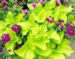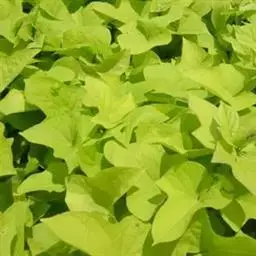 金叶番薯是旋花科番薯属的多年生草本植物。茎略呈蔓性;叶呈心形或不规则卵形,全缘或有分裂,叶色为黄绿色,…