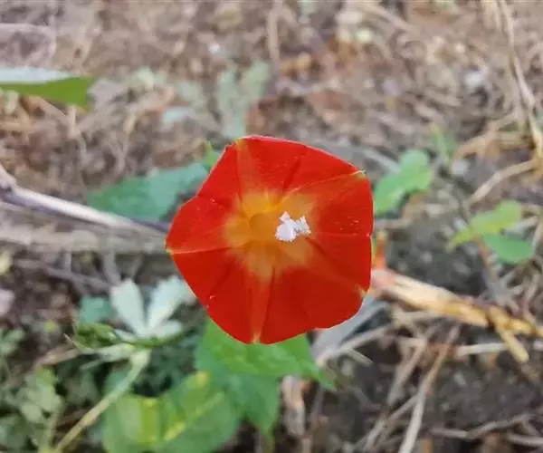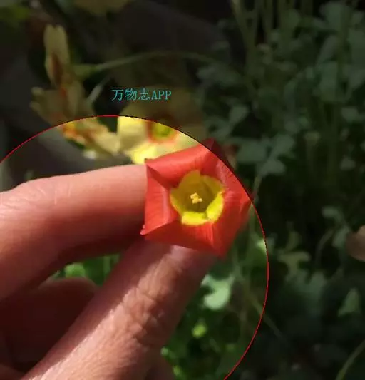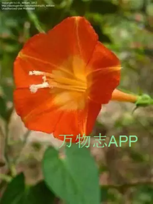 聚伞花序腋生,有花3-6朵,总花梗细弱,较叶柄长,有2苞片,花柄长约1cm,小苞片2;萼片5,不相等,卵状长圆形,钝头,有长芒尖,芒线状,长2mm,着生于萼片顶端稍下方;花冠高脚碟状,橙红色,喉部带黄色,长达8-25mm,管细长,于喉部骤然展开,冠檐5深裂;雄蕊5,显露于花冠之外,稍不等长,花丝丝状,基部肿大,有小鳞毛,花药小;雌蕊稍长于雄蕊;子房4室,每室1胚珠;花柱丝状,柱头头状,2裂。