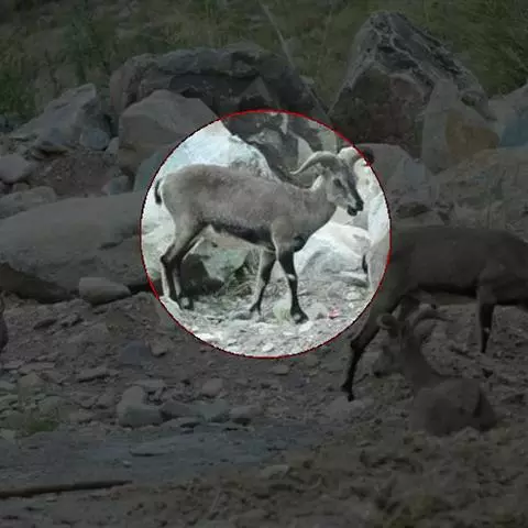 盘羊:雄性肩高可达120厘米,体重可达200千克。雄性的弯角粗大,长达1米以上,向下扭曲呈螺旋状,…
