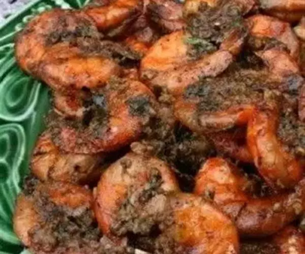辅料:上好铁观音茶叶、糯米粉、干蒜蓉、熟芝麻、干辣椒节、香葱椒盐、孜然 云雾茶香虾 做法: