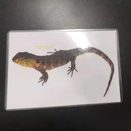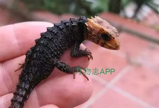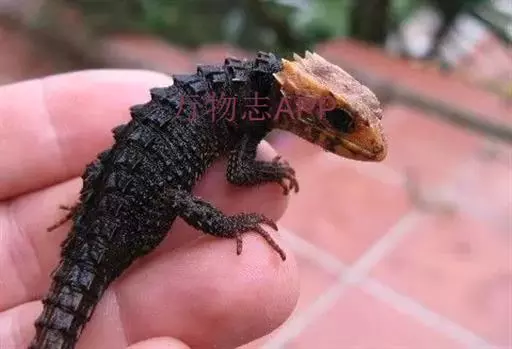 鳄蜥(学名:Shinisaurus crocodilurus):是爬行动物中比较古老的一类,体长15-30厘米,尾长23厘米左右,体重50-100克,身体可以分为头部、颈部、躯干部、四肢、尾5个部分。头部较高,头部和体形与蜥蜴相似,颈部以下的部分,特别是侧扁的尾巴,既有棱嵴状的鳞片,又有许多黑色的宽横纹,则又很像扬子鳄,所以被称为鳄蜥。