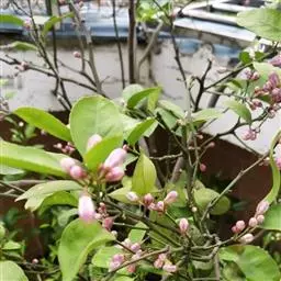 香橼为小乔木或灌木状;株高达5米;幼枝、芽及花蕾均暗紫红色;茎枝多刺,长达4厘米;单叶,…