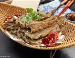 干烧小黄鱼 是由黄鱼等制作的食物,配料是葱、姜、蒜。