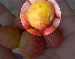 果实性状:(1)北枳椇种子扁平圆形,背面稍隆起,旗面较平坦,直径-5mm,厚1-1.5mm。表面红棕色、棕黑色或绿棕色,有光泽,于扩大镜下观察可见散在凹点,基部凹陷处有点状淡色种脐,顶端有微凹的合点,腹面有纵行隆起的种脊。种皮坚硬,胚乳白色,子叶淡黄色,肥厚,均富油质。气微,味微涩。 (2)积椇种子暗褐色或黑紫色,直径3.2-4.5mm。(3)毛果枳椇种子黑色、黑紫色或棕色,近圆形,直径4-5.5mm,腹面中部有棱,背面有时具乳头 拐枣 状突起。广东、广西等地有以连肉质花序轴一并入药。均以饱满、有光泽为佳。