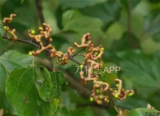 嫩枝、幼叶背面、叶柄和花序轴初有短柔毛,后脱落。叶片椭圆状卵形、宽卵形或心状卵形。果柄含多量葡萄糖和苹果酸钾,经霜后甜,可生食或酿酒,俗称“拐角”;木材硬度适中,纹理美,供建筑及制家具和美术工艺品等的用材。分布河南、陕西、甘肃陇南、江西、安徽、浙江、广东、福建、湖北、湖南、广西、四川、贵州、云南等省。果实形态似万字符,故称其树为万寿果树。果实熟透可生吃,果肉多浆,无果核,种子裸露在果肉之外,味浆甜略有甘涩,亦可做汤,汤味独特醇香。