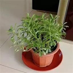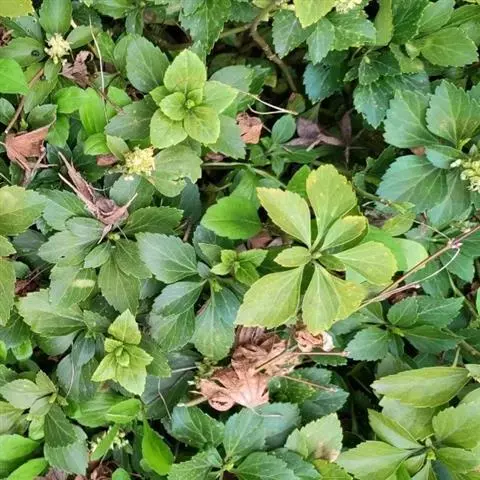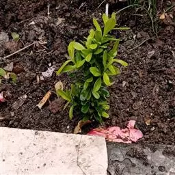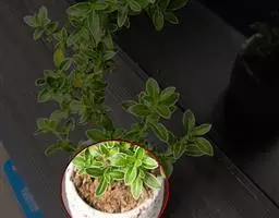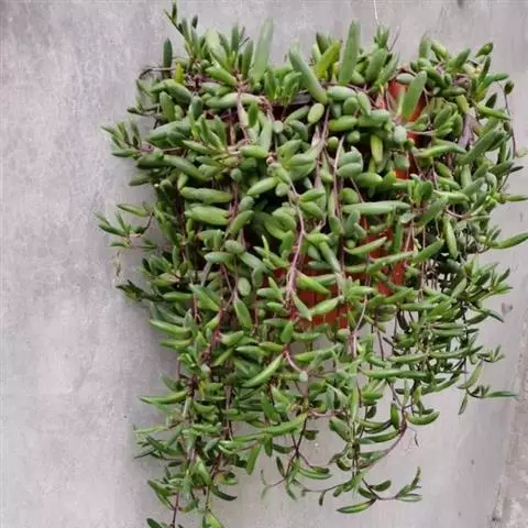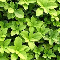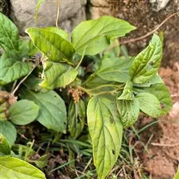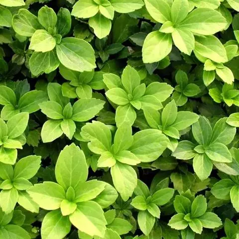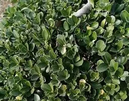 板凳果常绿亚灌木,铺地生长。株高20cm,冠径25cm。每个茎顶端生3~6片叶,叶卵形,边缘有锯齿,…