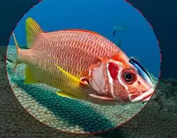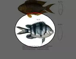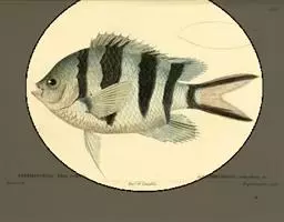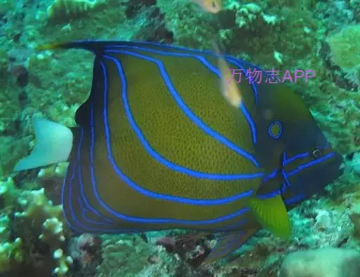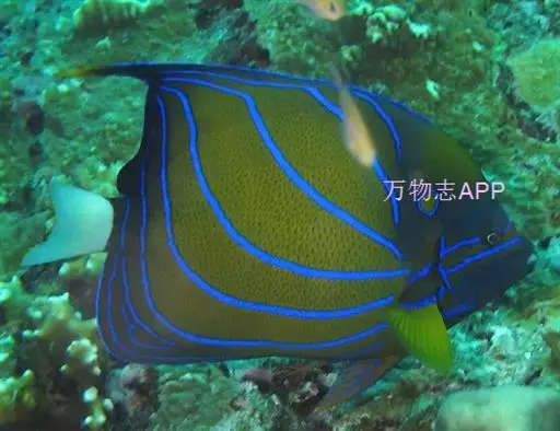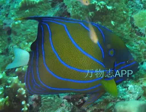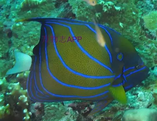 环纹刺盖鱼或称肩环刺盖鱼,别称蓝环神仙或白尾蓝纹神仙,成鱼尾鳍白色,肩部有一个蓝色圆环,体侧则有数条蓝色弧线,非常美丽,是著名的海水观赏鱼类。主要分布于印度太平洋海区,多见于印度尼西亚,活动于大型珊瑚礁区,觅食无脊椎动物及各类附着于礁石的有机物如海绵、珊瑚虫等。
