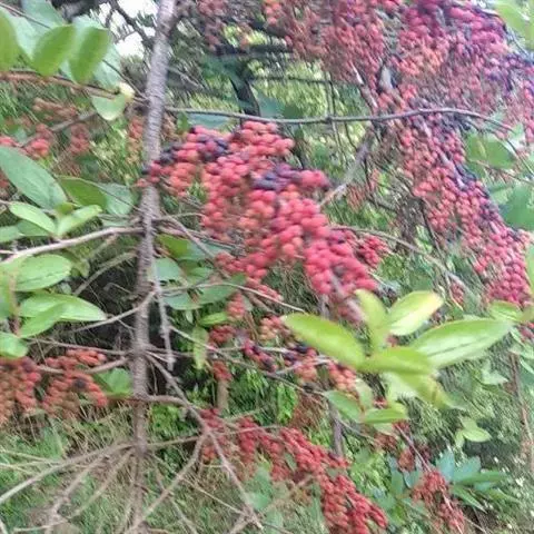 大果冬青为冬青科落叶乔木植物。高5~17米。有长枝和短枝,小枝有皮孔,近无毛。叶纸质,卵状椭圆形,两面无毛或幼叶有稀疏微毛;叶缘具明显锯齿。花白而香。果圆球形,有宿存的柱状柱头,熟时黑色;果核有条纹和槽。植物根可供药用,用于眼翳等症。