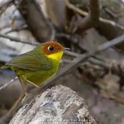 赤尾噪鹛中型鸟类,体长24~28厘米。头顶至后颈红棕色,两翅和尾鲜红色,眼先、眉纹、颊、颏和喉黑色,…