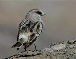 雌鸟额、头顶和后颈深灰色,背、腰灰色微沾棕黄色,尾上覆羽深灰色。颏、颊、喉黑色,下体灰黑色,其余与冬羽相似。