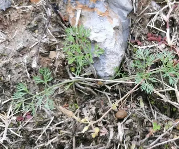 一年生或二年生草本,高5~30厘米:茎直立或斜升,多分枝,被微小头状毛。基生叶莲座状,平铺地面,羽状浅裂或深裂,叶片狭匙形;茎生叶狭披针形至条形,有疏齿或全缘:总状花序顶生;花小,不明显;花梗丝状,被棒状毛;萼片舟状,呈椭圆形,无毛或被柔毛,具膜质边缘;花瓣极小,匙形,白色。短角果近圆形,种子椭圆形,棕红色,平滑。主产河北、辽宁、内蒙古等地。