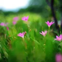 小韭兰学名韭菜莲(Zephyranthes grandiflora Lindl.)又名风雨花、菖蒲莲、红玉帘和旱水仙,多年生草本,鳞茎卵球形,基生叶常数枚簇生,线形,扁平,花单生于花茎顶端,下有佛焰苞状总苞,花玫瑰红色或粉红色,蒴果近球形,种子黑色,花期夏秋。韭莲喜温暖、湿润、阳光充足,亦耐半阴,宜排水良好、富含腐殖质的砂质壤土。韭莲原产墨西哥南部至危地马拉,我国南北各地庭园都引种栽培供观赏,常置于庭园、花坛边。