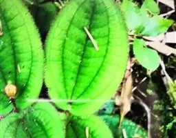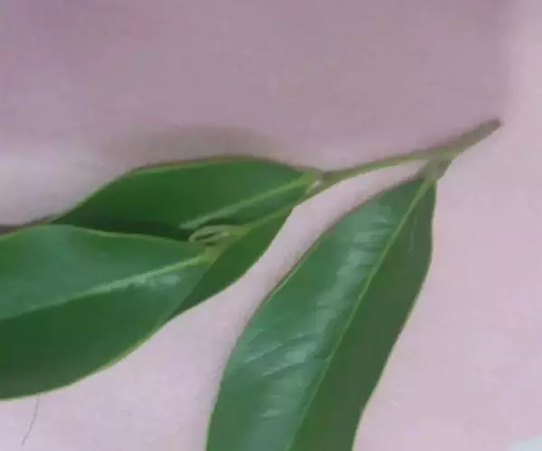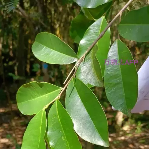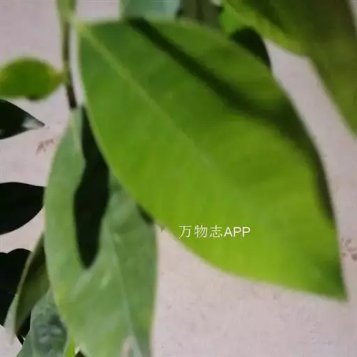 叶革质,圆形、椭圆形至长圆形,有时近倒卵形,长5-9厘米,宽2.8-6厘米,先端锐尖或急尖而具短尖头,基部宽楔形,上面暗绿色或紫绿色,光亮,下面淡绿色,两面均无毛,侧脉每边15-20,在下面更明显,小脉纤细,近平行,不明显,边缘有时被稀疏的柔毛;叶柄长约5-7毫米,被毛。