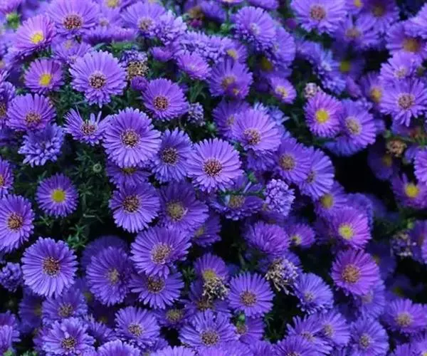 荷兰菊为多年生草本。株高50—100cm。叶片椭圆形,头状花序,单生,蓝色。荷兰菊为菊科多年生宿根草本花卉,有地下走茎,茎丛生、多分枝,叶呈线状披针形,光滑,幼嫩时微呈紫色,在枝顶形成伞状花序,花色蓝紫或玫红,花期10月。