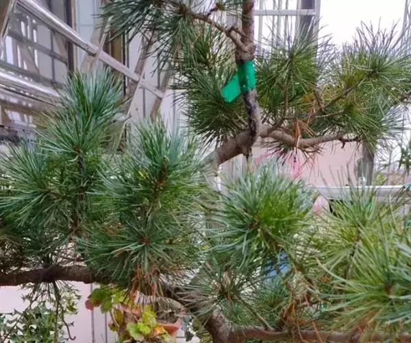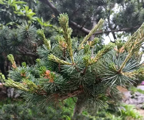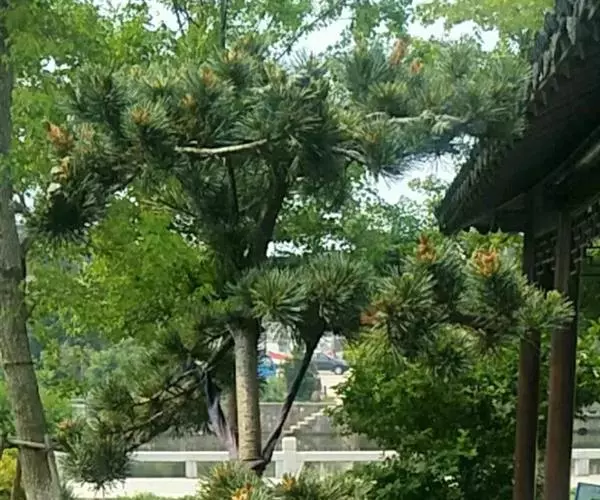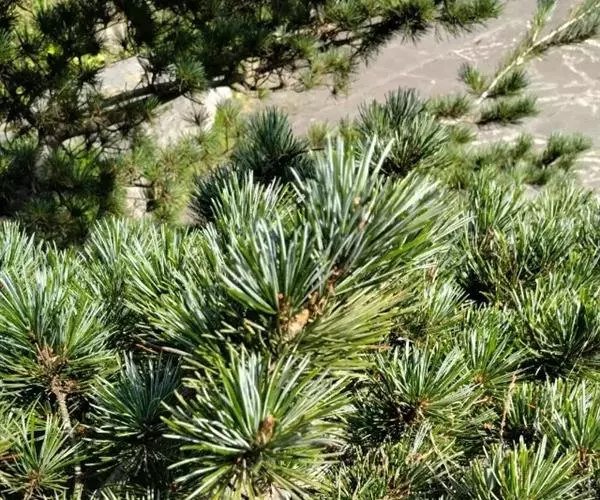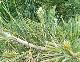 日本五针松为松科常绿乔木,原产日本,分布在本州中部、北海道、九州、四国海拔1500m的山地。我国的长江流域各城市、青岛、北京等地引种栽培。