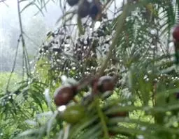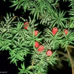 东北红豆杉 耐阴树种,密林下亦能生长,多年生,不成林。多见于以红松为主的针阔混交林内。属浅根性树种,其主根不明显,侧根发达,生于山顶多石或瘠薄的土壤上,多呈灌木状,多散生于阴坡或半阴坡的湿润、肥沃的针阔混交林下。性喜凉爽湿润气候,可耐- 30℃以下低温,抗寒性强,最适温度20-25℃,忌暴热、暴冷和空气干燥。喜湿润,但怕涝,适于在疏松湿润排水良好的砂质壤土上生长。