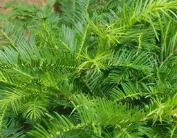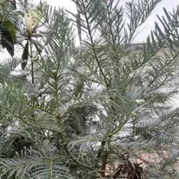 于5-6月春夏之交进行。从4年以上树龄的母株上,按长巧厘米剪下插穗,2年生幼枝作插穗成活率较高。为促进早生根,可将插穗基部浸入100ppm的α一茶乙酸或100ppm吲哚乙酸溶液中3小时后,插人与育苗畦相同规格的露地插床上。或用蛙石加风化砂(1:1)作为基质的插床上扦插,插前剪去插穗下部的小枝和针叶。插深3-5厘米,株行距8×10厘米。插后浇透水,插床用薄膜拱罩保湿,每日喷水2次。两周后每日喷水一次。用遮荫网遮荫,插后一个半月发根。发根后可在育苗畦上移栽一次,行距30厘米,株距10-15厘米。经常浇水保持土壤湿润,松土除草作到畦面无杂草,可适当追施无机或有机肥料,以有机肥料为好。