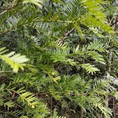 东北红豆杉(学名:Taxus cuspidata S. et Z.)是红豆杉科,红豆杉属乔木,高可达20米,胸径达1米;树皮红褐色,有浅裂纹;枝条密生;叶片排成不规则的二列,斜上伸展,条形,有短柄,先端通常凸尖,上面深绿色, 有光泽,下面有气孔带,雄球花有雄蕊,种子紫红色,有光泽,卵圆形,5-6月开花,9-10月种子成熟。