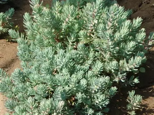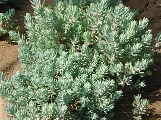 多年生草本植物株,叶带有白色蜡粉,灰绿色,叶在小枝上的排列似云杉。花亮黄色,花期 6至 7月,花枝较长且很坚硬。叶片尖端弯曲,全株灰绿色。花色黄,株高约15至25厘米。 反曲景天