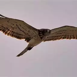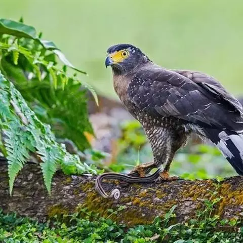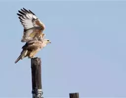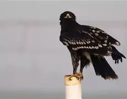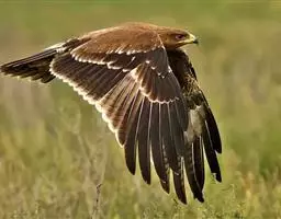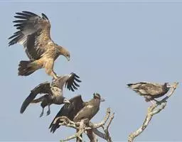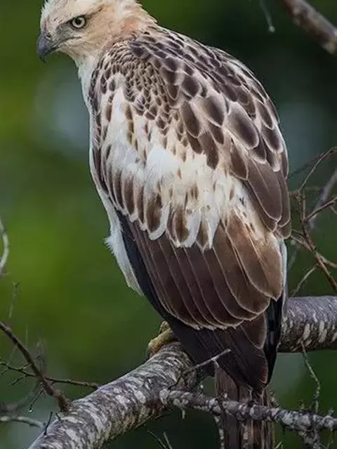 白肩雕:又名御雕,是大型猛禽。体长73-84厘米。体羽黑褐色,头和颈较淡,肩部有明显的白斑,在黑褐…