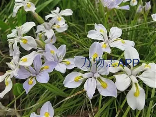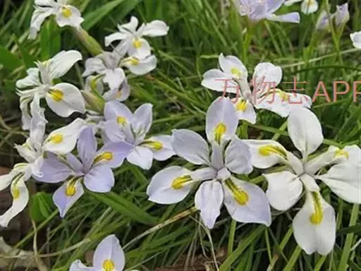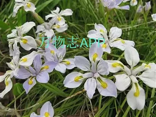 双色野鸢尾为多年生草本植物,叶子呈剑状淡绿色。…