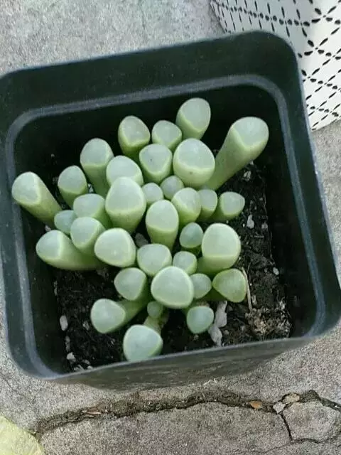 五十铃玉是番杏科窗玉属的多年生肉质植物,别名有“棒叶花”“婴儿脚趾”。植株高5厘米,叶片淡绿色,肉质,…