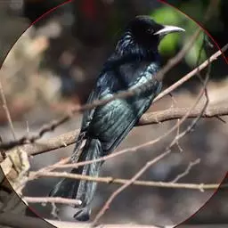 发冠卷尾是中型鸟类,体长28-35厘米。通体绒黑色缀蓝绿色金属光泽,额部具发丝状羽冠,…