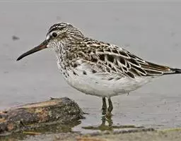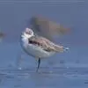 三趾鹬体长约20厘米,是一种近灰色的涉禽。肩羽明显黑色。比其他滨鹬白,飞行时翼上具白色宽纹;尾中央…